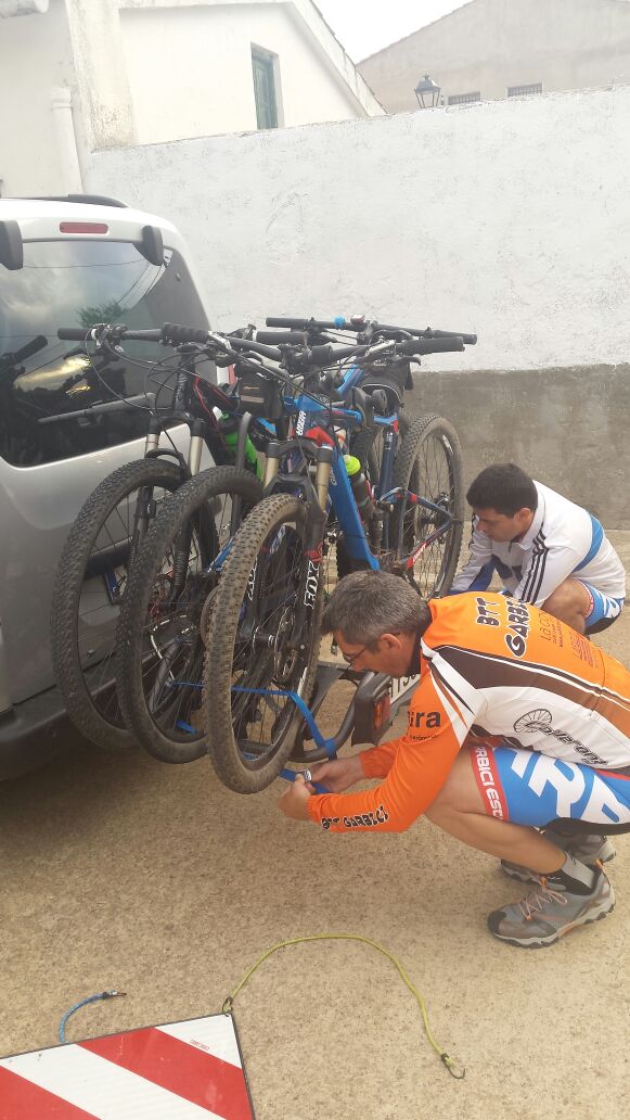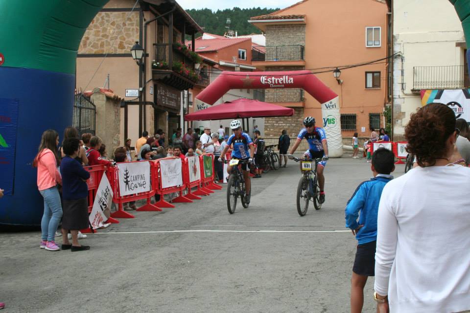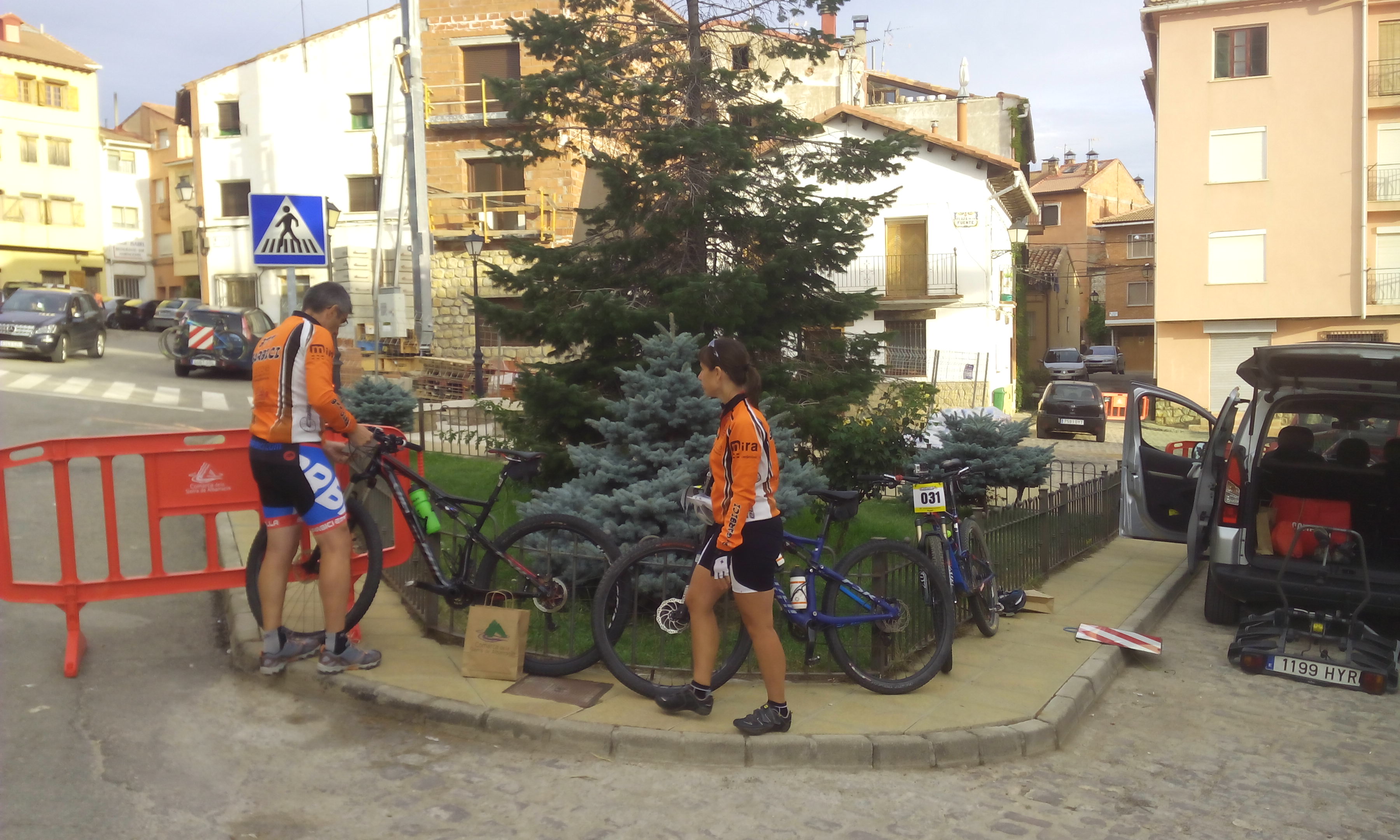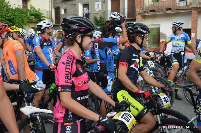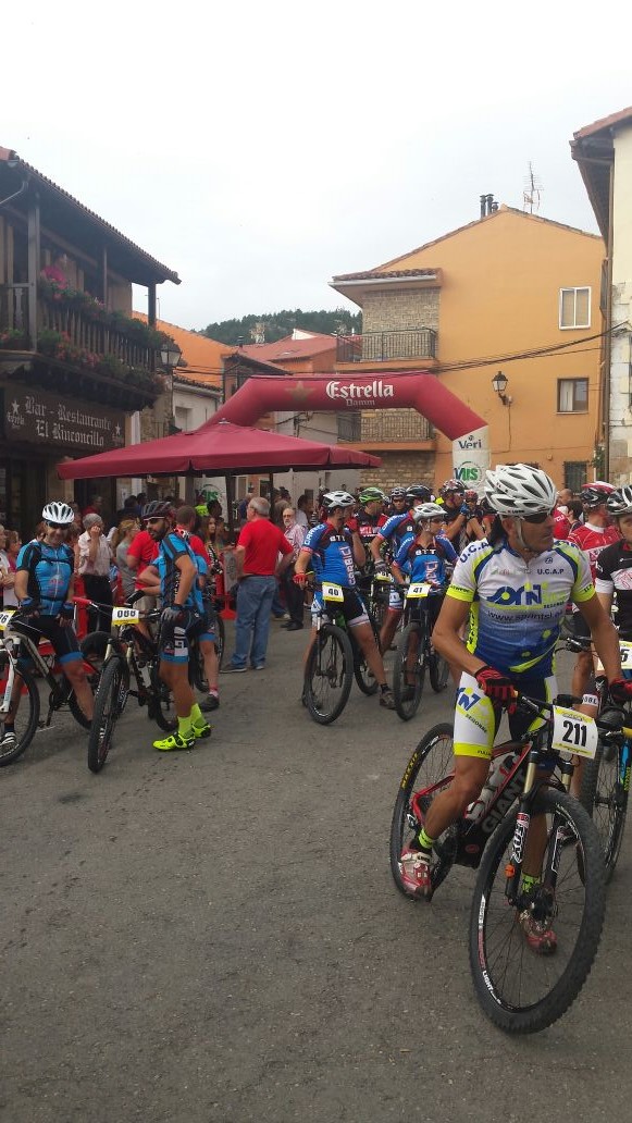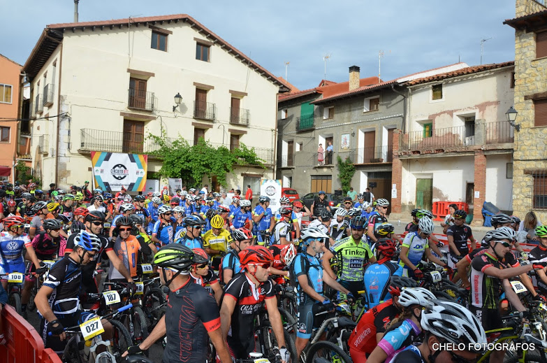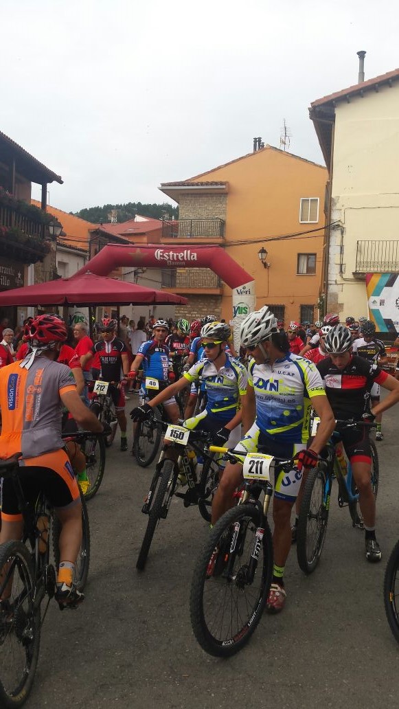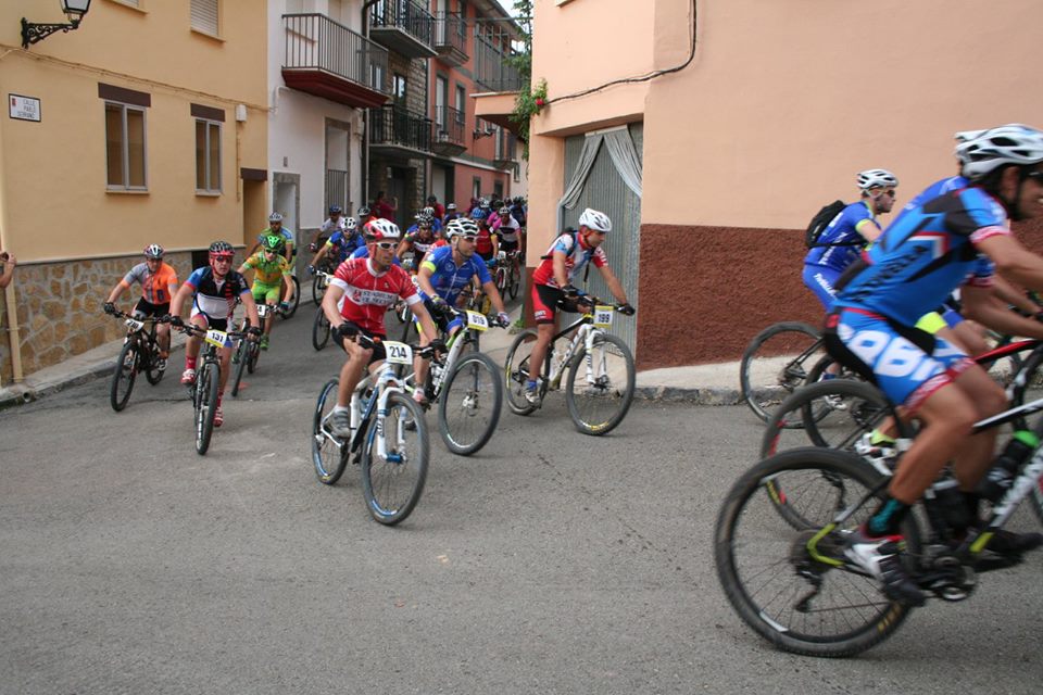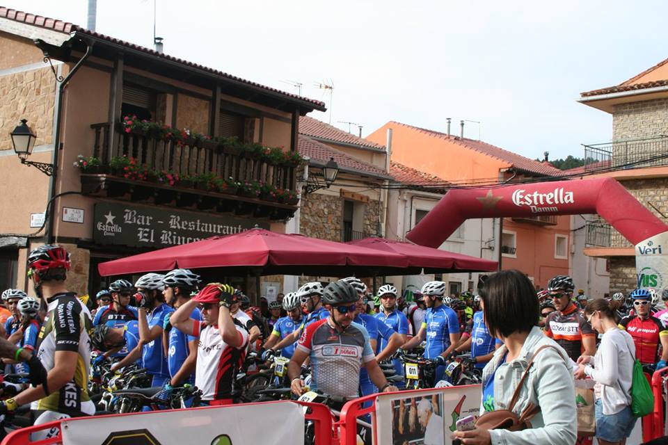 A las 7:30 habíamos quedado los cuatro en Alustante para salir hacia Bronchales y recoger los dorsales. Para Cente iba a ser su primera marcha. Una vez recogida la bolsa del corredor, colocados los dorsales en la bici y calentado un poco, nos dirigimos hacia la plaza Sopeta donde estaba situada la salida. A las nueve en punto se produjo la salida. Cente con ganas se puso delante y yo tras Noe y Alberto. Tras salir del pueblo, adelanté a Noe pero a Cente ya lo había perdido de vista. Con las ganas que tenía había salido chillando ruedas.